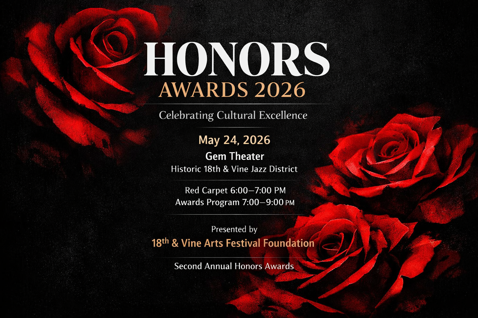 The Honors Awards is the annual red-carpet ceremony produced by the 18th & Vine Arts Festival Foundation.